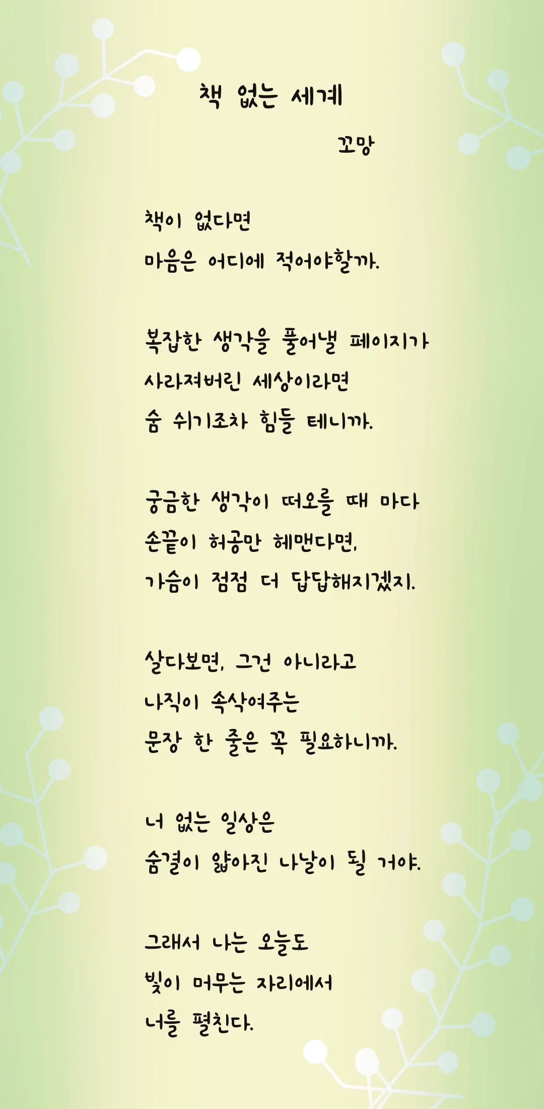 02관련 글자율과제<하얀 트리> 글 최두리, 그림 이림 - 12월 과제이림자율과제<겨울에 다시, 만나> 글 그런, 그림 박인호 - 12월 과제그런자율과제10월 - 하루 속 5분_전영미전영미SPONSORED